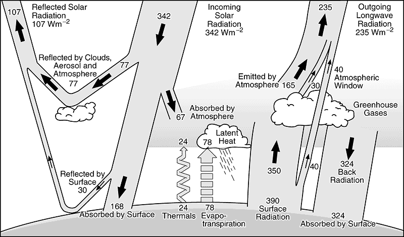 Authoritative (i.e. mainstream) climate models recognize the dominant role of water vapor in the greenhouse effect but treat it as a feedback mechanism that is responsive to other changes in the system. The warmer the atmosphere is the more water vapor it can hold. Changes in temperature may be forced by other natural processes — including the greenhouse effect of carbon dioxide — and then amplified by the positive feedback of water vapor’s greenhouse effect. The reason that water vapor is treated in the models as a feedback rather than a forcing agent is that it has a relatively short “residence time” in the atmosphere. That is, water vapor tends to stick around for only 10 days or so before it condenses into water, forms clouds and returns back to earth in the form of precipitation. This is the water cycle that we all learned in primary school and that those of us who grew up in Seattle know all too well.